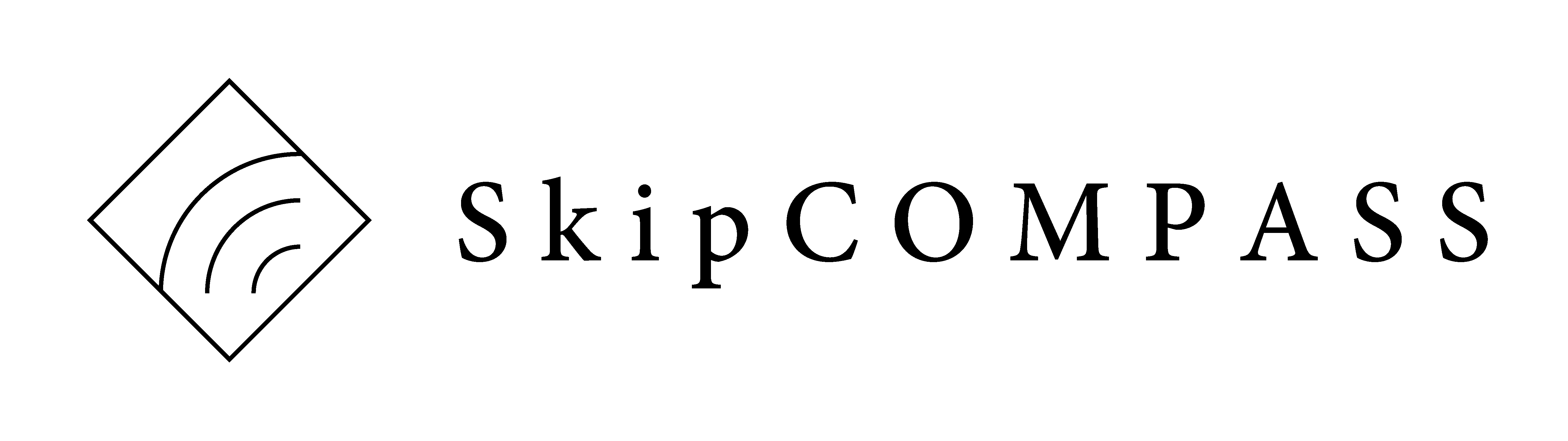 SkipCOMPASS のロゴマークは、飛躍をともに目指す思いを込めコンパス(製図用具)で描いた同心円を、コンパス(方位磁針)をイメージした菱形の中に収めた図案となっています。